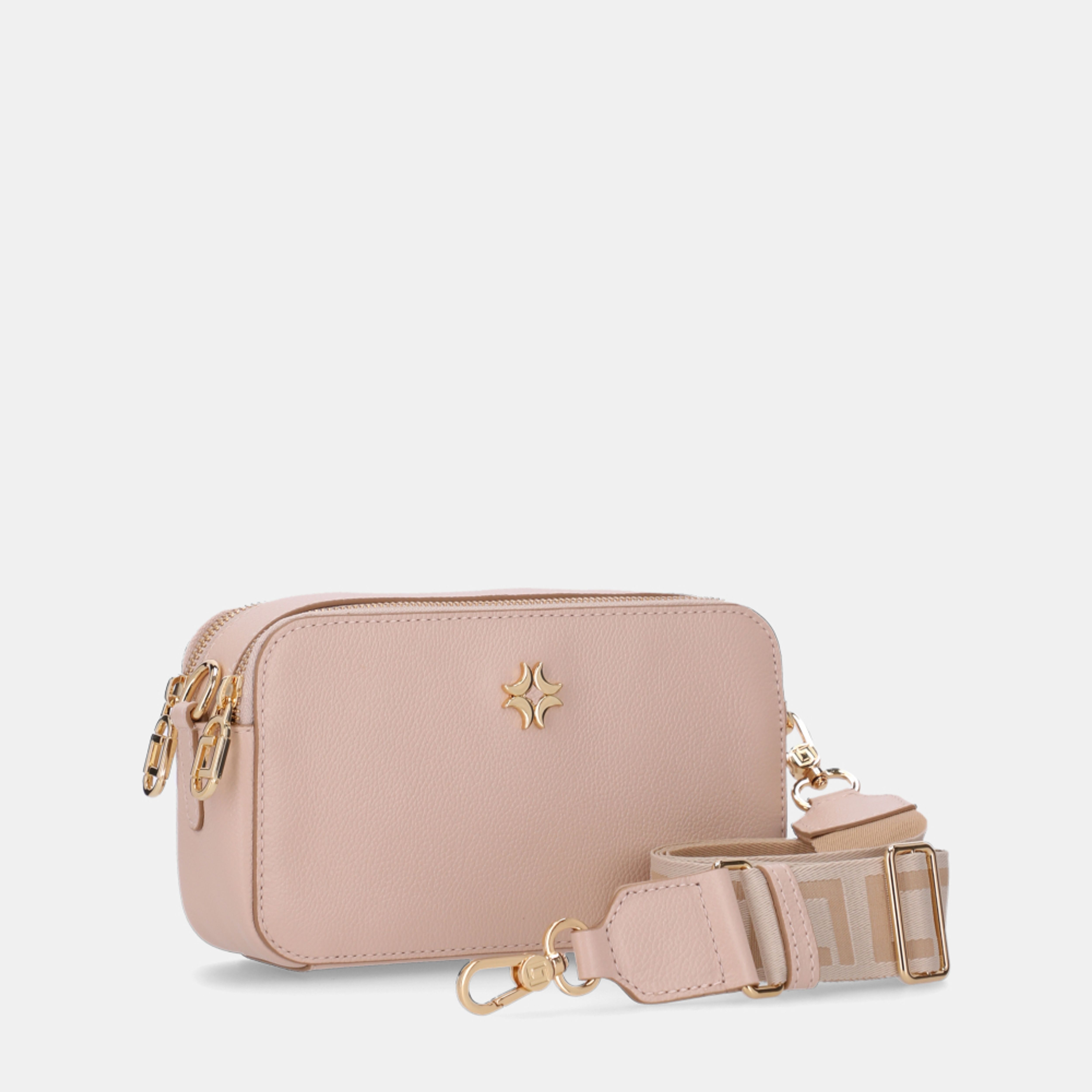 Confeccionada em couro legitimo, apresenta acabamento refinado e textura delicada, garantindo elegância e durabilidade. O modelo compacto é ideal para acompanhar a rotina com leveza, acomodando os itens essenciais. a Alça em gorgurão personaliza, ajustável, adiciona um toque moderno e confortável ao uso, enquanto as ferragens douradas e o logo metálico frontal reforçam o DNA sofisticado da marca.