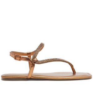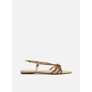 Cabedal: Tira larga única com maxi fivela metálica dourada