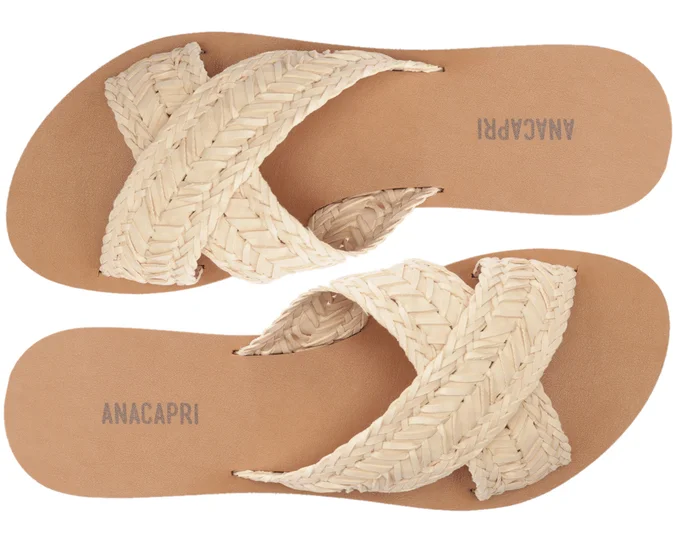 A Rasteira Anacapri Tiras Cruzadas Palha Branca traz frescor e leveza com um toque artesanal que é a cara da temporada. Com design best-seller da marca, o modelo aparece em nova versão com tecido de gorgurão em tom neutro e detalhe em pesponto nas tiras, criando um visual moderno e natural.