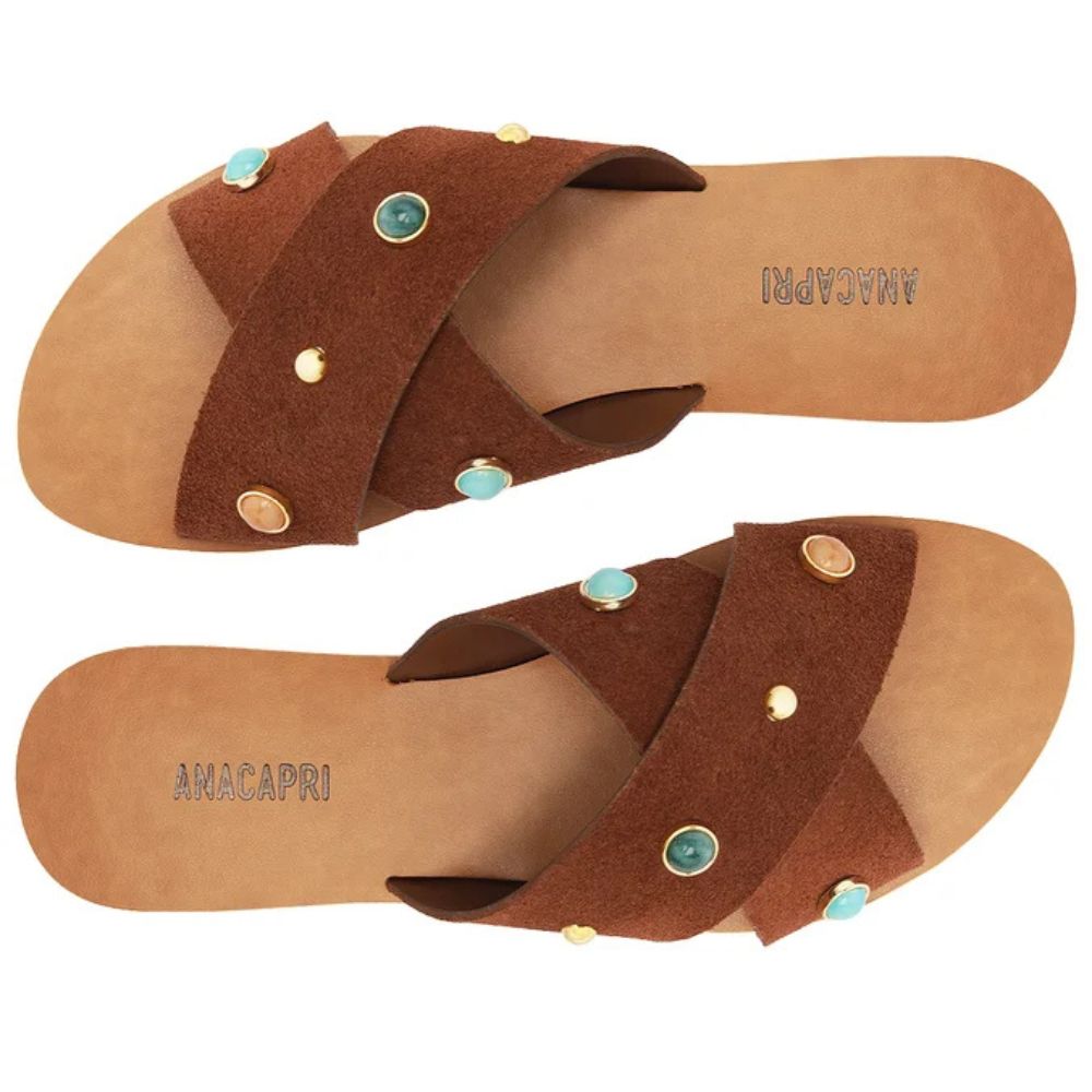 Rasteira Anacapri Tiras Cruzadas Couro Acamurçado Marrom