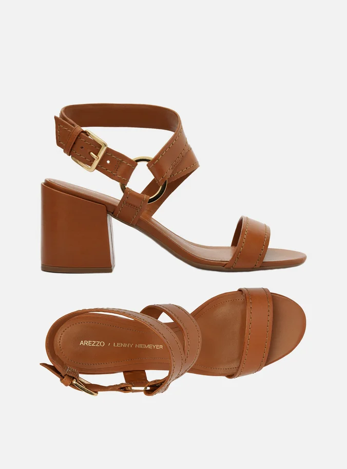 A Sandália Marrom Couro Lenny Niemeyer da Arezzo traz elegância e funcionalidade em um modelo único. Confeccionada em couro legítimo, apresenta salto médio bloco de 7,5 cm, proporcionando estabilidade e conforto.