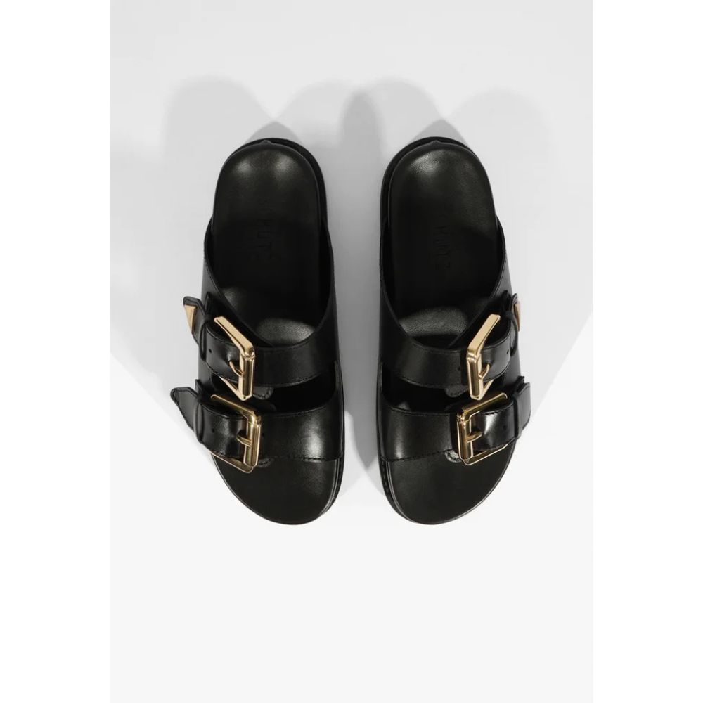 Sandália Papete Aurora Couro Preto