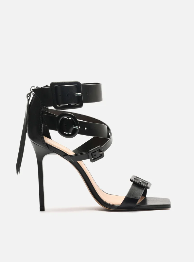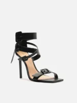 A Sandália Preta de Couro da Arezzo é sinônimo de elegância e atitude. Com salto alto fino de 10,6 cm e bico quadrado, ela combina um visual moderno com design marcante.