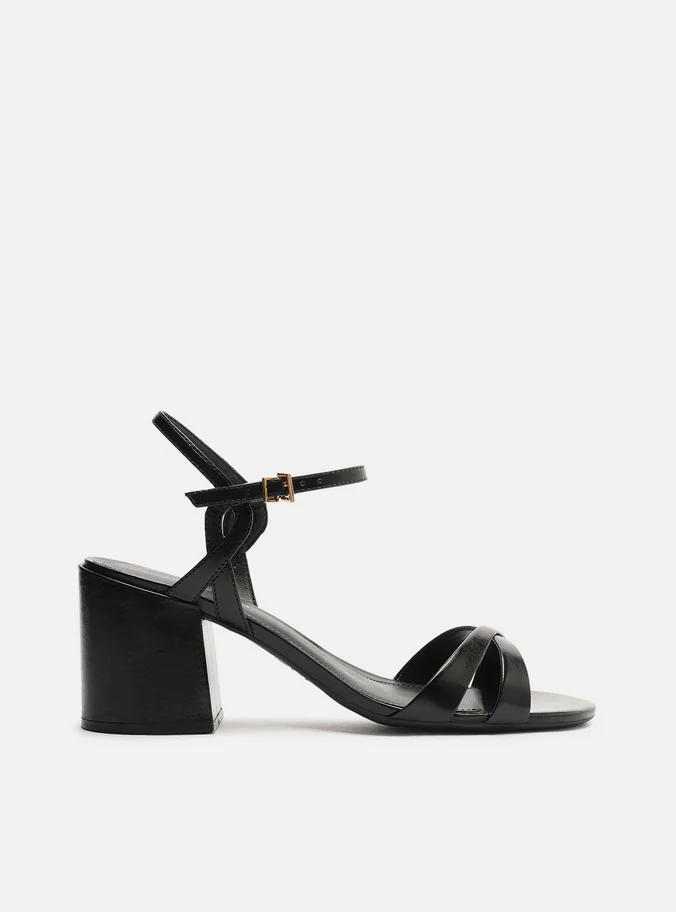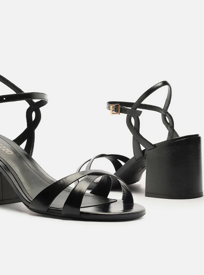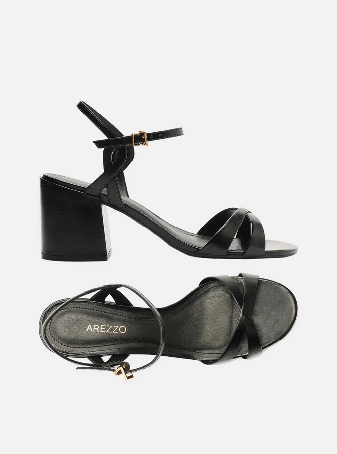 A Sandália Preta Couro da Arezzo é confeccionada em couro legítimo, apresentando salto médio bloco de 7,5 cm que une conforto e elegância. Seu formato arredondado na ponta garante um toque delicado ao visual.