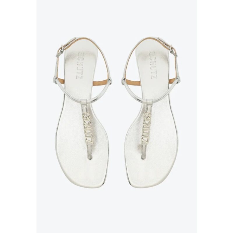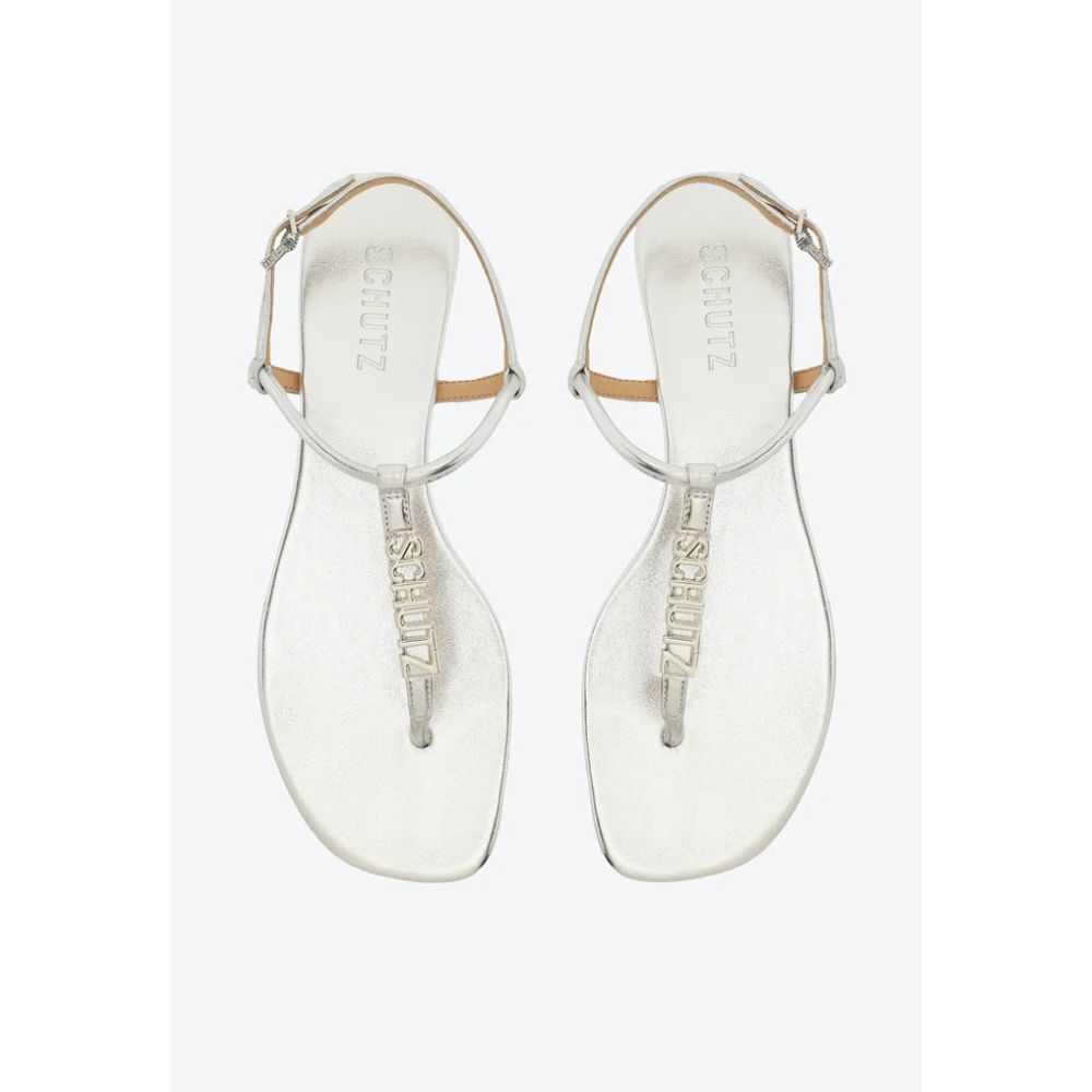 essa sandália feminina conta com delicadas tiras que deixam o pé totalmente à mostra, enquanto o acabamento metalizado garante sofisticação à produção, que ganha um toque extra de personalidade com a glamourosa aplicação do logo Schutz na tira central. Sabe aqueles modelos de sandálias confortáveis que vão com tudo? É ela!