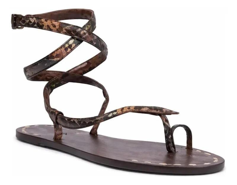 - Design gladiador com tiras ajustáveis ao tornozelo.