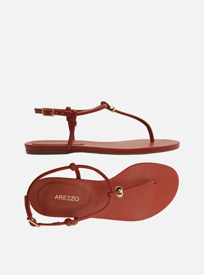 A Sandália Rasteira Slim Tiras Metal da Arezzo na cor vermelha é a escolha ideal para quem busca estilo e conforto. Com sola flat e design minimalista, possui tira fina que passa entre os dedos, adornada por um elegante detalhe metálico. O ajuste é garantido pela fivela lateral, tornando o calce prático e seguro.