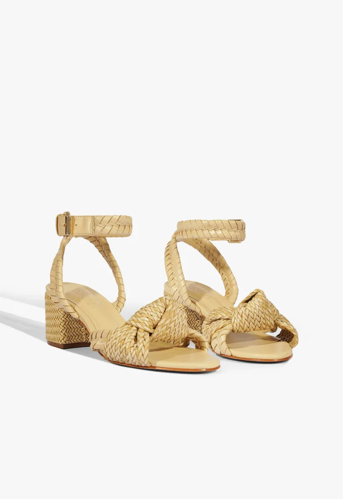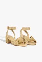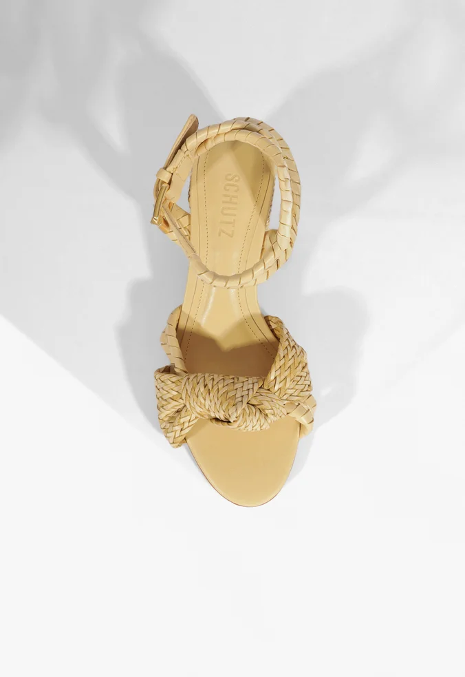 A Sandália Khari Mid Schutz em tom bege neutro é um modelo elegante e versátil, perfeito para acompanhar produções refinadas com leveza e atitude. Seu grande destaque é a construção trançada com detalhe de nó na gáspea, que traz um toque artesanal e super moderno ao visual.