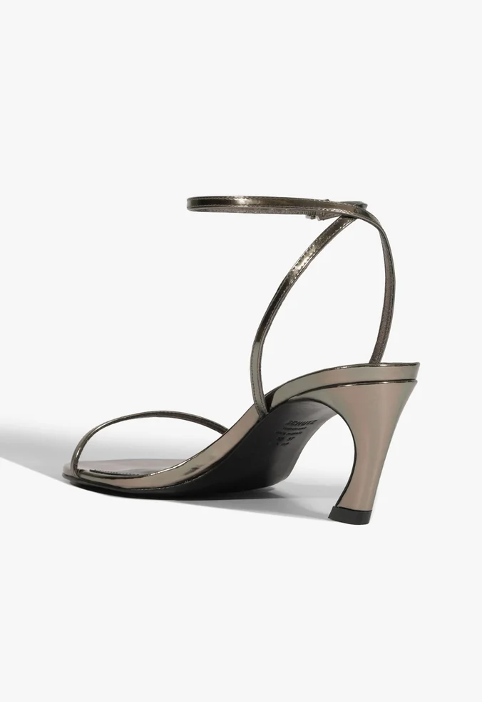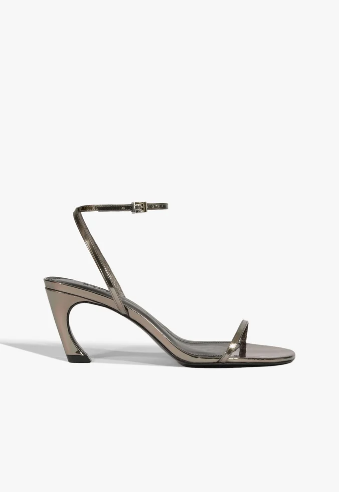 A Sandália Siena Curve Schutz é feita em couro legítimo na cor cinza, perfeita para quem busca um visual elegante e descomplicado. Suas tiras ultra finas na gáspea e no tornozelo criam um efeito leve e delicado, enquanto o fechamento em fivela oferece praticidade e ajuste seguro.