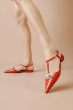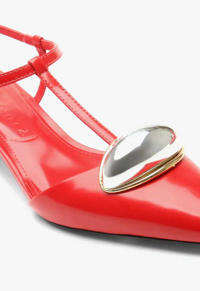 Slingback vermelho em couro, versátil e sofisticado, perfeito para adicionar romantismo e feminilidade ao seu dia a dia.