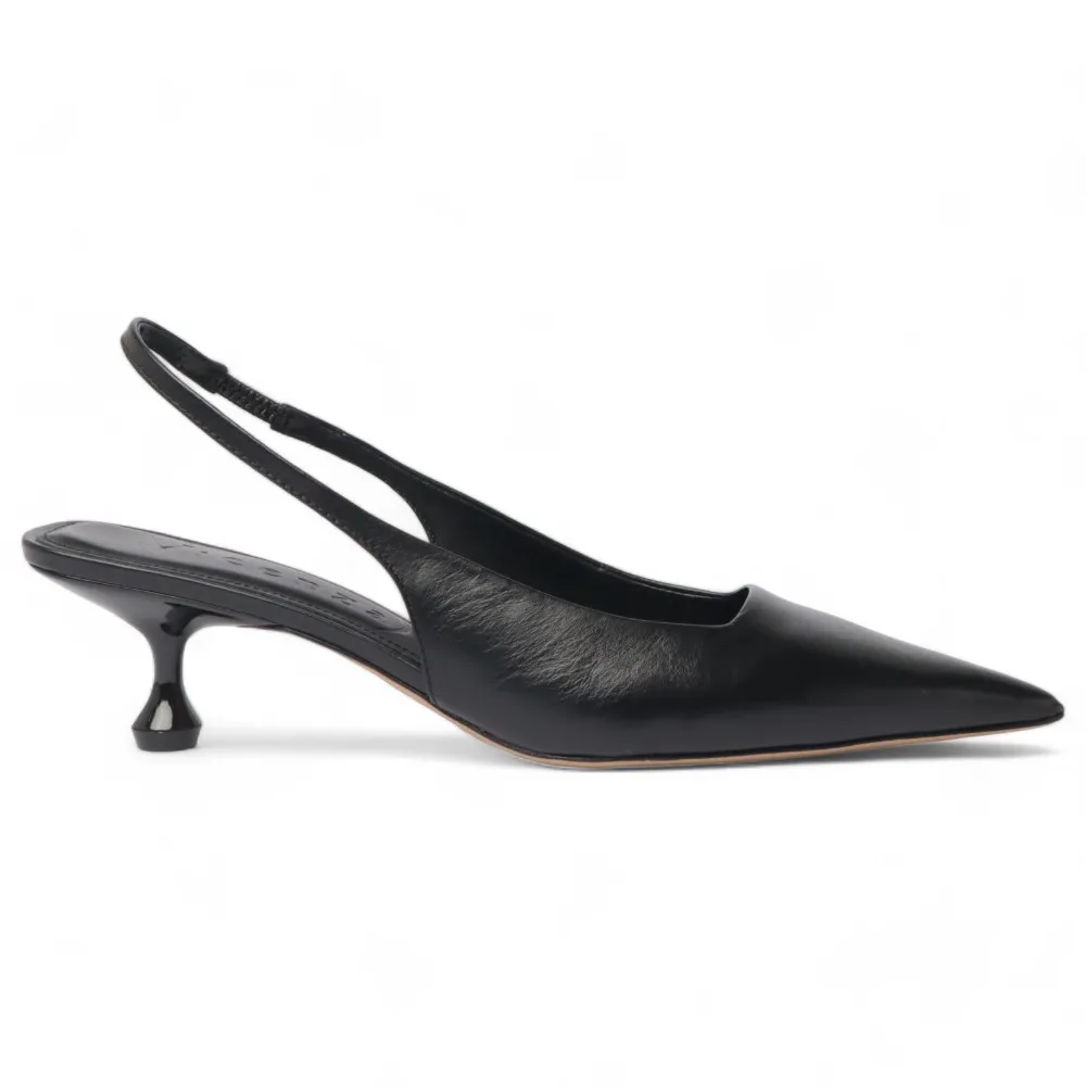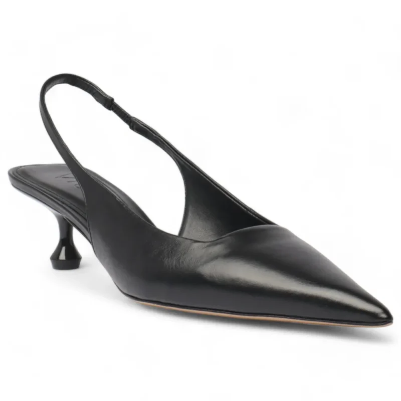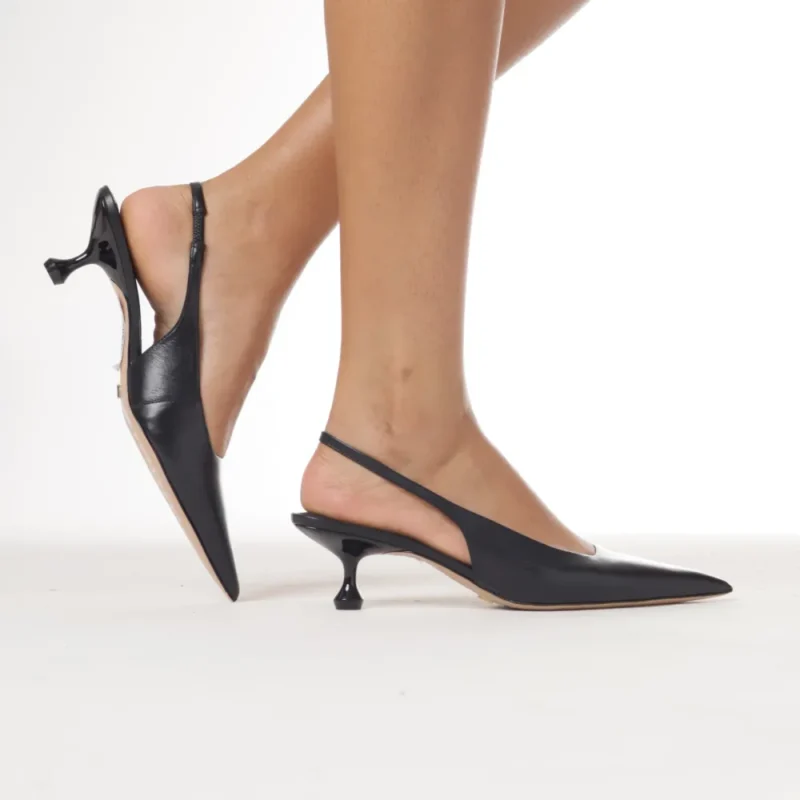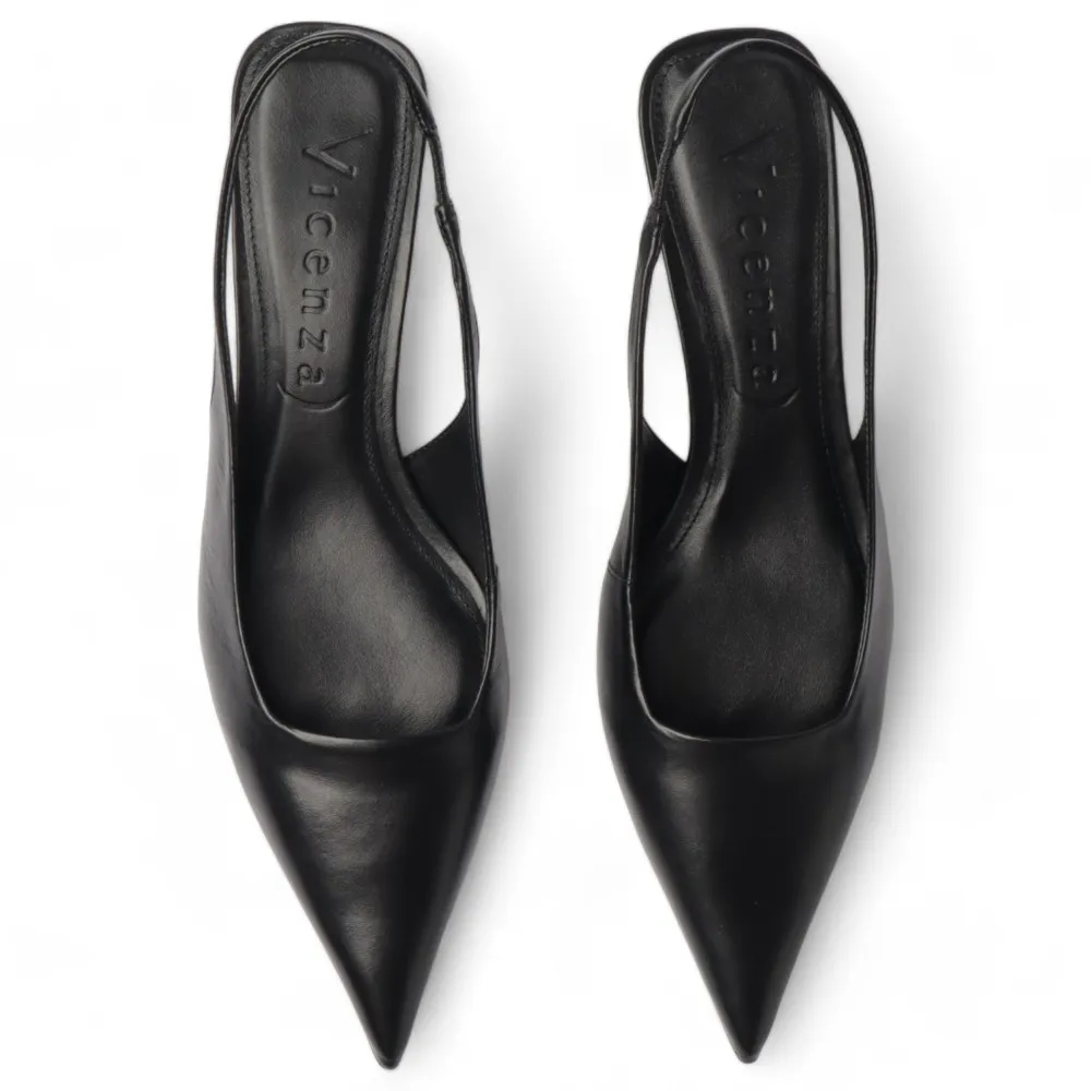 Clássico e atemporal, o Slingback Servia da Vicenza é confeccionado em couro preto e possui bico fino, trazendo sofisticação ao visual. Com salto médio de 5,5 cm, garante conforto e elegância para o dia a dia ou ocasiões especiais. Um modelo versátil que combina com produções formais e casuais, ideal para quem busca estilo com personalidade.