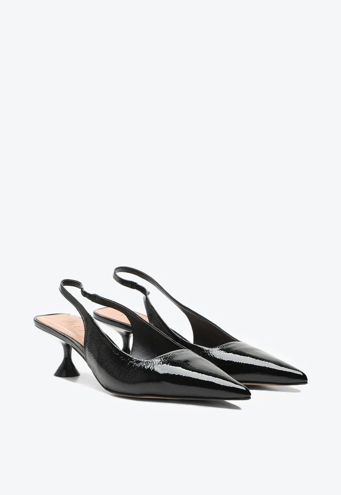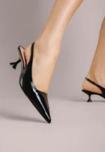 O Slingback Vicenza Servia Preto traz um design sofisticado com acabamento em verniz preto, combinando charme e modernidade. O bico fino realça a delicadeza do modelo, enquanto o salto médio de 5,5 cm oferece conforto e postura elegante.