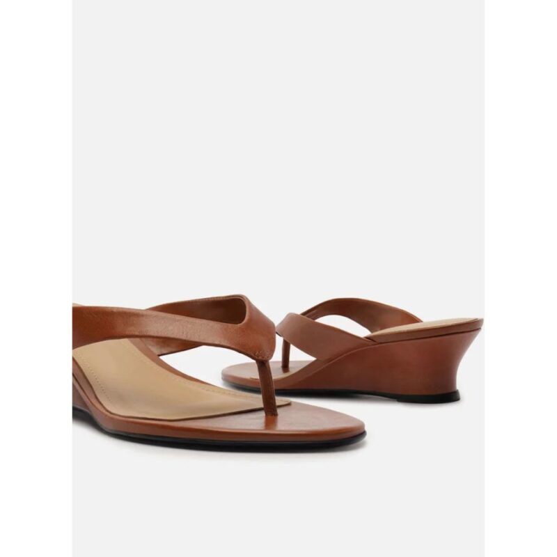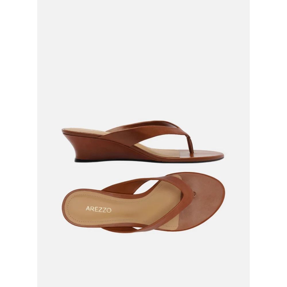 Tamanco Marrom Couro Salto Anabela Flip Flop Arezzo