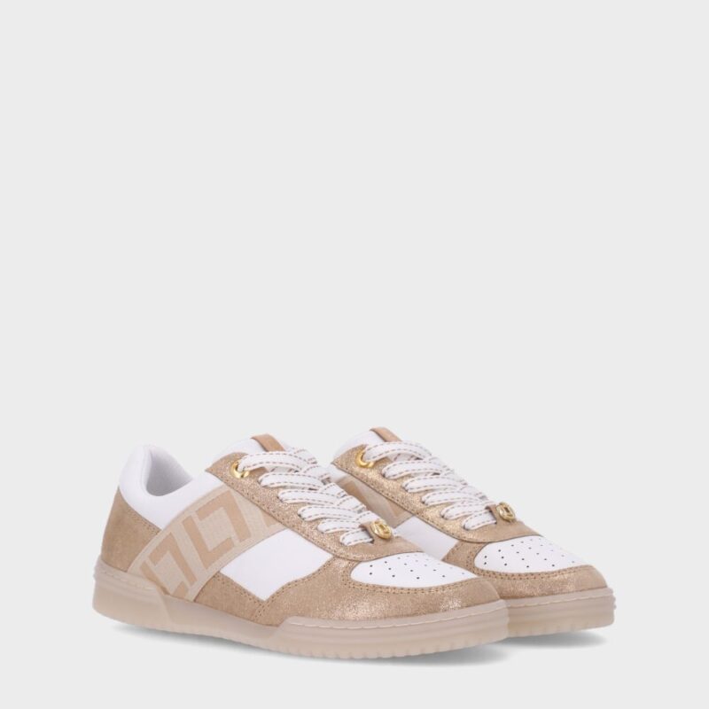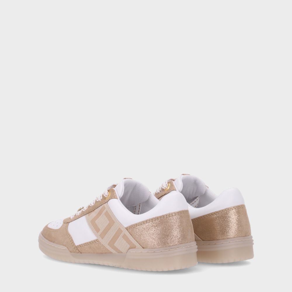 Sua combinação de couro com camurça dourada oferece um toque de elegância, enquanto os detalhes metalicos nos cadarços acrescentam estilo moderno e refinado. A sola de Tr garante segurança e conforto ao caminhar, tornando-o ideal para o dia a dia ou para compor looks casuais mais arrumados.
